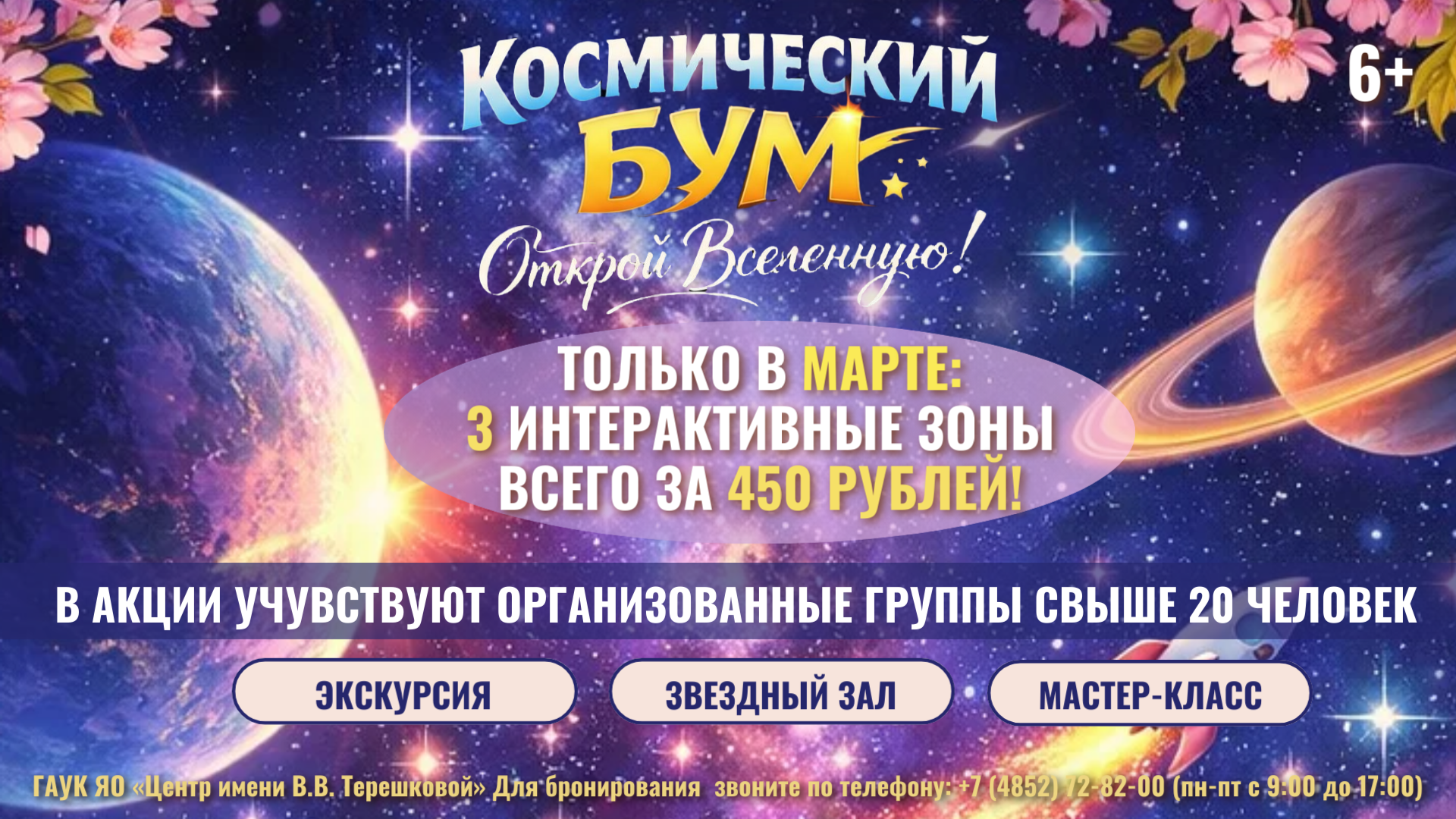 С 3 по 27 марта 2026 года Центр имени В.В. Терешковой запускает уникальную акцию для организованных групп от 20 человек!